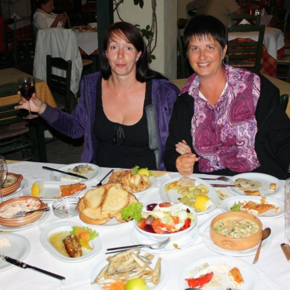 Eine der Gewinner hat Ihren Preis schon eingelöst. Frau Glowka und Ihre Mitreisende waren auch dieses Jahr wieder bei uns und haben Ihren Gewinn, ein Abendessen im Wert von 50 € im griechischen Lokal
