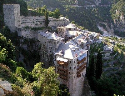 The monastery, which was founded in 963AD, is not only the oldest in Athos, but also the most famous and venerable. It is situated at 150 meters altitude on a natural cliff on the southeast coast and directly at the foot of Mount Athos.