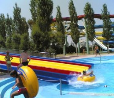 Im Park verteilt kann man an vielen Stellen auf Liegen unter Sonnenschirmen, die meist auf Wiesen aufgestellt sind entspannen. Hauptattraktionen sind die vielen Pools, ein Wellenbad, Kleinkinderbecken, eine Reifenrutsche und der Rutschenturm mit 6 verschiedenen Wasserrutschen. Hier findet man einige recht spektakuläre Rutschen, bei einer fällt man nahezu senkrecht nach unten.